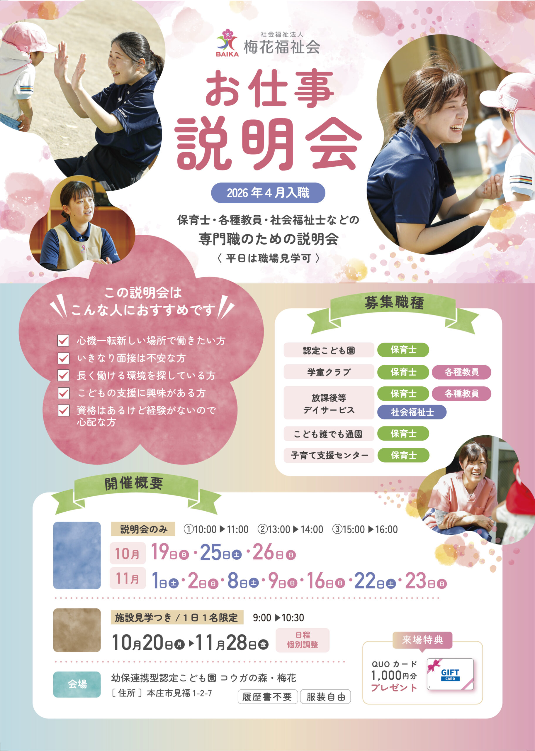 2026年4月~の保育・教育・福祉のお仕事説明会を行います。