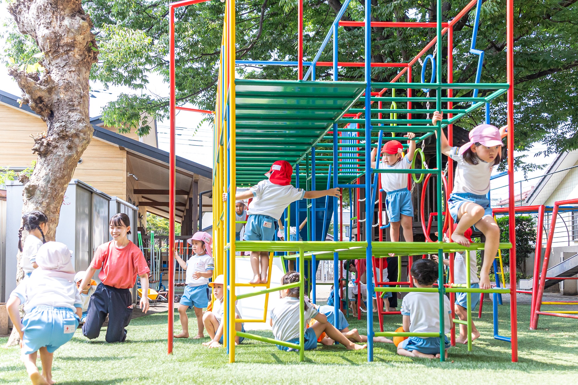 運動遊びや感触遊びなど、こどもとしっかり関わる時間を大切に